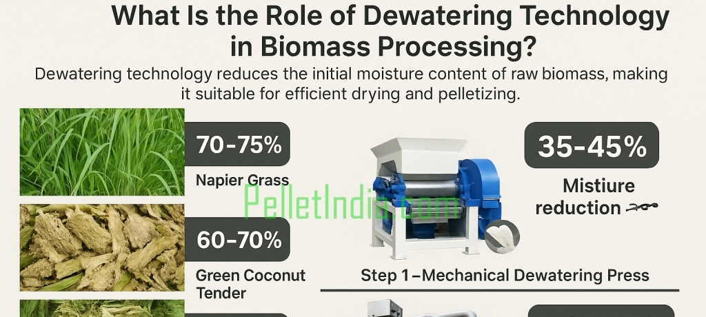 Dewatering technology plays a crucial role in the biomass pellet-making process by reducing the initial moisture content of raw biomass materials, making them suitable for efficient drying and pelletizing. Many high-moisture raw materials—such as Napier Grass, sugarcane bagasse, and green coconut husk—contain 65% to 75% moisture, which is too high for direct pellet production. To […]